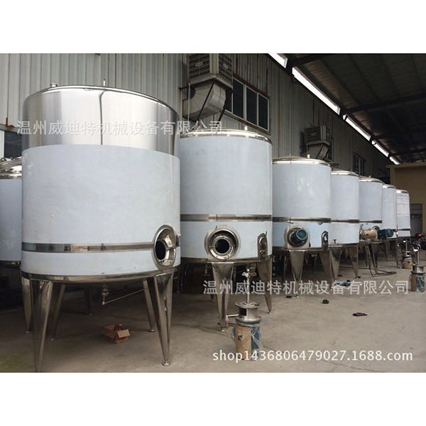 調(diào)配罐又名拌料缸、混料缸,有節(jié)能、耐腐蝕、生產(chǎn)能力強(qiáng)、清洗方便、結(jié)構(gòu)簡單等優(yōu)點(diǎn),主要用于乳品和食糖及其它元素和各種藥物再配合后進(jìn)行攪拌均勻作用,是乳品、飲料、制藥廠不可缺少的設(shè)備。采用材質(zhì)為SUS304或316不銹鋼。