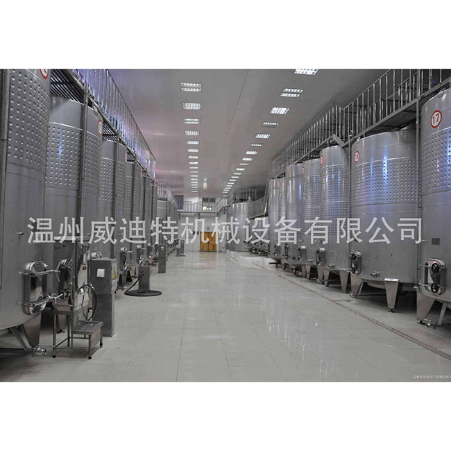 不銹鋼葡萄酒制冷發(fā)酵罐在其外壁的上部中部裝有冷卻套(熱交換器),以使冷卻液在該套中循環(huán),該罐壁用作冷卻的熱交換表面。它在外套中流動(dòng)。為了通過(guò)使外套中的冷卻液湍流來(lái)增強(qiáng)熱交換效果,將外套的表面點(diǎn)蝕或在外套上設(shè)置螺旋引導(dǎo)板。夾套型冷卻區(qū)與內(nèi)部冷卻型相比具有較低的熱交換效率,允許均勻的熱交換,克服了內(nèi)部冷卻型的各種缺點(diǎn),并且在實(shí)際生產(chǎn)中被廣泛使用。